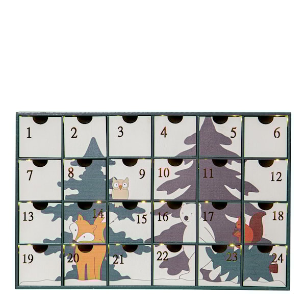 Adventskalendern Forest Friends från Star Trading är en mysig julkalender med 24 små LED-lampor i lådorna för extra stämningsfull känsla.