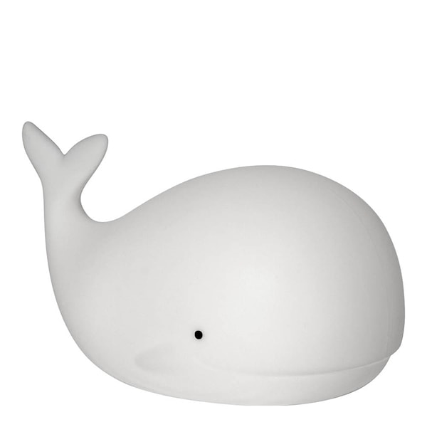 Whale Night Light är en fantasifull nattlampa som gör kvällsrutinerna till något mysigt och lekfullt. Den lilla valen sprider ett mjukt sken som ändrar färg när man klappar på den, vilket skapar både underhållning och en lugnande atmosfär i rummet.