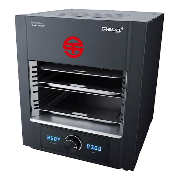 Med den mindre modellen av Steakgrill från Steba kan du grilla allt på ett sätt som aldrig förr, men även på en tid som aldrig förr! Steakgrillen är kompakt men grillen erbjuder mycket inre plats. Det unika med grillen är att den uppnår väldigt höga temperaturer på mycket kort tid. Den startar på 400 grader och når upp till 850 grader. Du kan ha färdiggrillad mat på bara några få minuter med Stebas Devil´s Heaven Power Steakgrill. Grillen är utrustad med cool-touch material utanpå. Två grillplåtar medföljer; en fettplåt, en plåt för efterkylning samt ett handtag för att ta ut plåtarna ur grillen - allt i rostfritt stål.