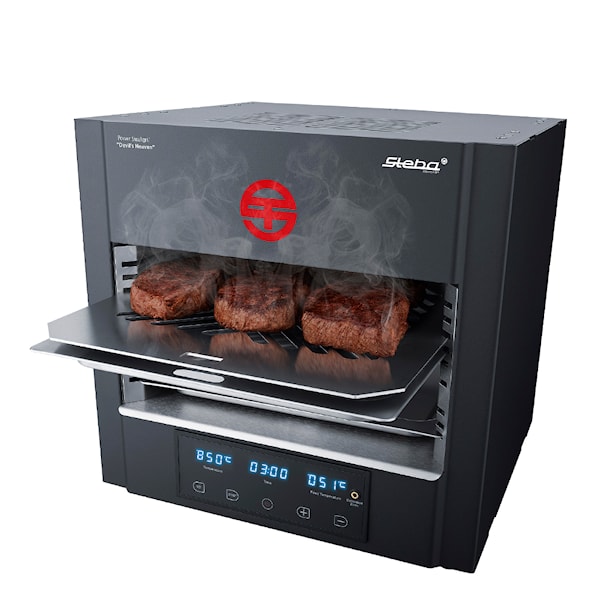 Med denna Steakgrill från Steba kan du grilla allt på ett sätt som aldrig förr, men även på en tid som aldrig förr! Steakgrillen är kompakt men grillen erbjuder mycket inre plats. Det unika med grillen är att den uppnår väldigt höga temperaturer på mycket kort tid. Den startar på 400 grader och når upp till 850 grader. Du kan ha färdiggrillad mat på bara några få minuter med Stebas Devil´s Heaven Power Steakgrill. Grillen är utrustad med cool-touch material utanpå. Två grillplåtar medföljer; en fettplåt, en plåt för efterkylning samt ett handtag för att ta ut plåtarna ur grillen - allt i rostfritt stål.