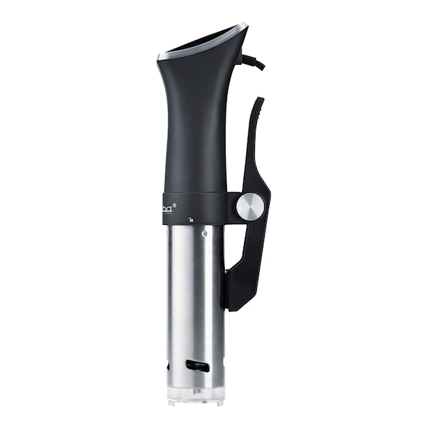 Från Steba kommer denna Sous Vide-cirkulator. Sous vide är franska och betyder ungefär "under vakuum" och det är vad denna matlagningsteknik handlar om. Med denna cirkulator får du en långsam tillagning, oftast under lång tid, till exakt den grad som önskas. Maten läggs i vakuumpåsar och sänks ned i kastrullen/grytan där cirkulatorn sitter. På cirkulatorn ställer du in exakt temperatur och sedan är det bara att vänta på ett resultat i restaurangklass.
