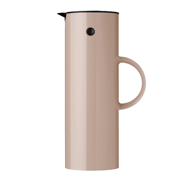 Termoskannan kombinerar tidlös form med genomtänkt funktion. Den utbytbara glasinsatsen håller dryck varm eller kall i flera timmar, och kannan levereras med både det klassiska vipplocket för smidig servering och ett tätt skruvlock som gör den perfekt att ta med på utflykt eller picknick. EM77 finns i ett brett urval av färger och har med åren även blivit en modern design- och stilikon.