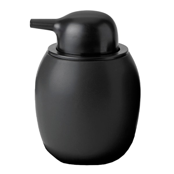 Tvålpumpens rundade form av stengods och plast matchar övriga föremål i sortimentet.