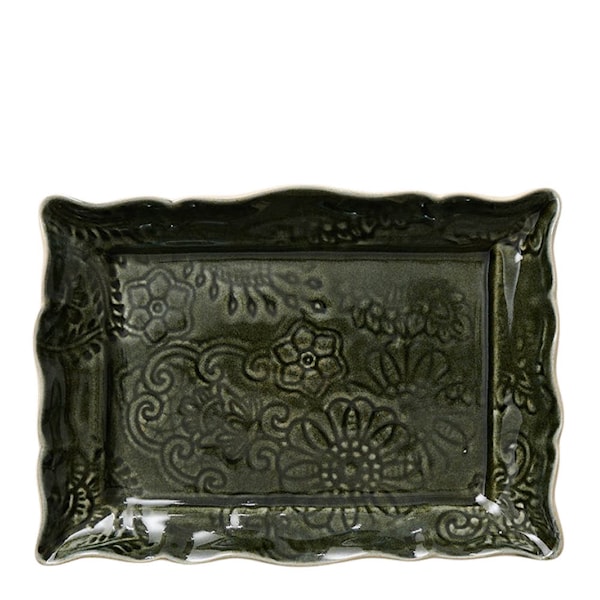 Sthål Arabesque assiett 19x13 cm är ett dekorativt, praktiskt, litet fat – perfekt för mindre serveringar som förrätter, fikabröd, dessert eller tapas. Den rektangulära formen och det karakteristiska mönstret skapar en personlig känsla vid varje måltid och fungerar även utmärkt som ett litet uppläggningsfat.