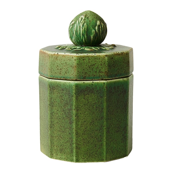 Keramikrukan, som ingår i Glänta-kollektionen, är ett konstverk i sig med ett skulpterat lock och en vackert färgad glasyr. Den harmoniska designen är inspirerad av naturens former, och varje kruka har sin egen unika prägel. Krackeleringar kan uppstå på ytan över tid, vilket bara bidrar till dess unika karaktär utan att påverka kvaliteten. Observera att krukan inte är avsedd för livsmedel.