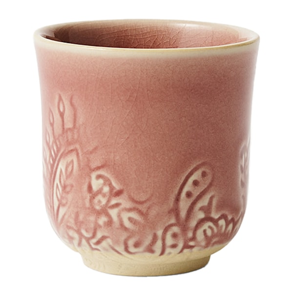 Koppens mönster visar tydligt att den tillhör Sthål's Arabesque-serie, vilket gör den enkel att matcha med andra delar i samma kollektion. Insidan är helt glaserad, medan utsidan elegant visar hur den flytande glasyren möter den naturligt vackra stengodsleran, vilket ger varje kopp en unik och levande yta.