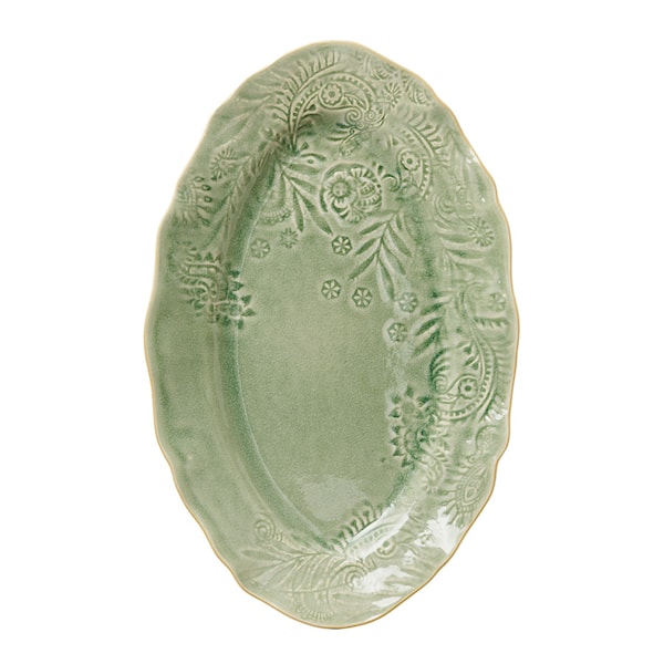 Ett underbart litet ovalt fat från Sthål som är en dröm för matentusiasten. Perfekt för att skapa matkonstverk. Det här fatet är redo att skapa feststämning och lyfter upp atmosfären direkt. Färgen är mångsidig och passar nästan till allt, vilket gör det till en rolig detalj på varje dukning och tillfälle. Dessutom är det praktiskt att fatet tål ugnsvärme och kan diskas i maskin, vilket gör det ännu mer bekvämt att använda. Den effektfulla glasyren ger fatet ett levande utseende med små krackeleringar, subtila färgskiftningar och en elegant rinnighet. Det handgjorda hantverket med stengodsleran och glasyren resulterar i unika variationer, vilket gör varje fat till en unik skapelse.