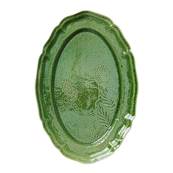 Arabesque Serveringsfat oval är ett stort och elegant uppläggningsfat från Sthål, perfekt för den som älskar att skapa vackra matarrangemang. Fatets unika design och generösa storlek på 49x32 cm gör det idealiskt för att presentera allt från festliga rätter till vardagliga måltider. Dess mångsidiga färg gör att det lätt smälter in i olika dukningar och blir en dekorativ detalj vid varje tillfälle.