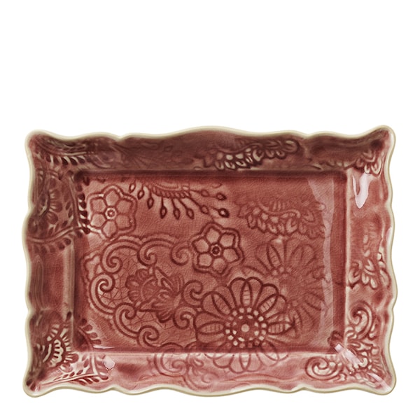 Sthål Arabesque assiett 19x13 cm är ett dekorativt, praktiskt, litet fat – perfekt för mindre serveringar som förrätter, fikabröd, dessert eller tapas. Den rektangulära formen och det karakteristiska mönstret skapar en personlig känsla vid varje måltid och fungerar även utmärkt som ett litet uppläggningsfat.