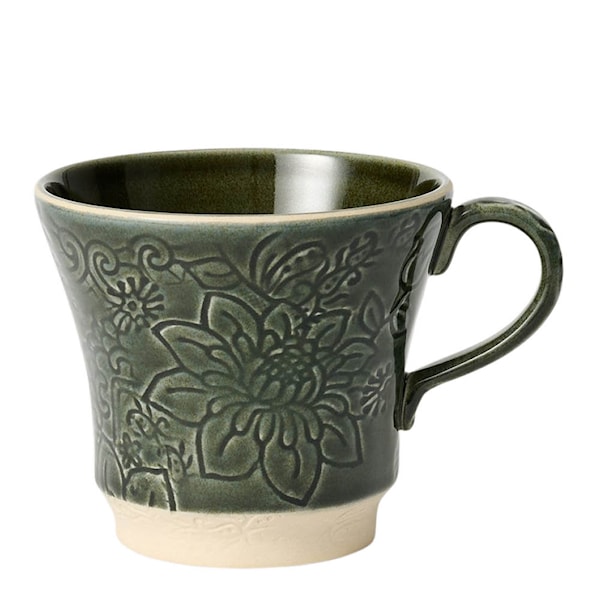 Sthål Arabesque tekopp 35 cl är en mugg som förenar klassisk funktion med konstnärlig känsla. Storleken passar perfekt för teälskaren, men gör sig lika bra till en kopp varm choklad, eftermiddagskaffet eller en kryddig chai. Det vackra reliefmönstret och den glaserade ytan skapar ett unikt uttryck – inget exemplar är det andra likt.