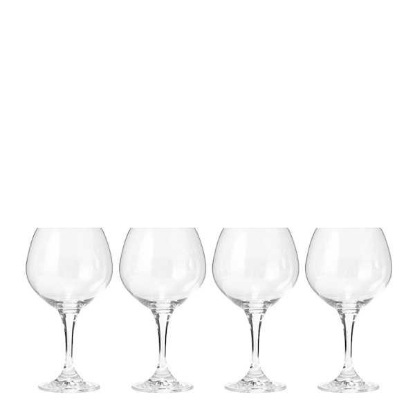 Bar ginglas 58 cl 4 st från Stiernholm är ett stilrent glas-set som lyfter din cocktailupplevelse. Med en generös kapacitet på 58 cl har dessa glas gott om plats för både gin, tonic och garnering och är gjorda av högkvalitativt kristallglas som ger en raffinerad och exklusiv touch.