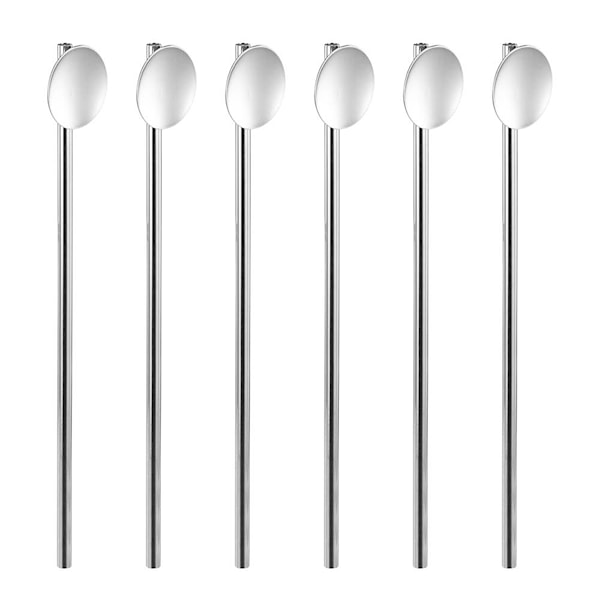 Skedarna är hållbara, återanvändbara och ett bra alternativ till engångssugrör. De tål diskmaskin och passar perfekt till cocktails, iskaffe och milkshakes.