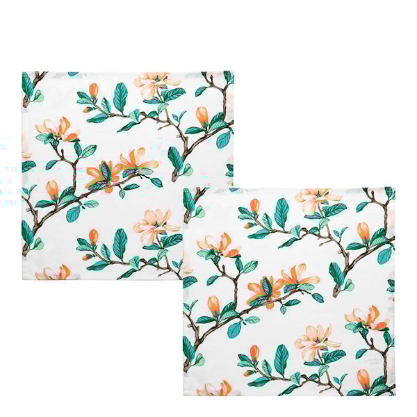 Stiernholm Magnolia servett 45x45 cm 2-pack vit är ett set med tygservetter i bomull och lin med ett dekorativt mönster av magnoliablommor. Den ljusa designen ger ett enhetligt och säsongsanpassat uttryck.