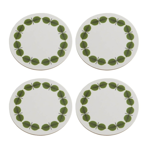 Berså glasunderlägg, förpackade i set om fyra och i grönt utförande av Stig L, är perfekta för att ge en elegant touch till din dukning samtidigt som de skyddar bordet.