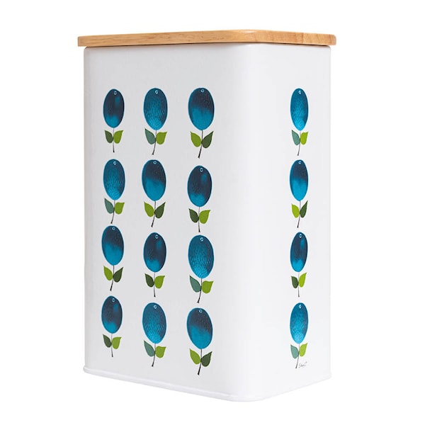 Förvara kaffet med stil i denna vackra plåtburk med Stig Lindbergs välkända Prunus-mönster. Den blå kaffeburken är tillverkad i metall och skyddar innehållet från luft och ljus, vilket hjälper till att bevara aromen längre. Formatet 11x8x17 cm passar perfekt på kökshyllan.