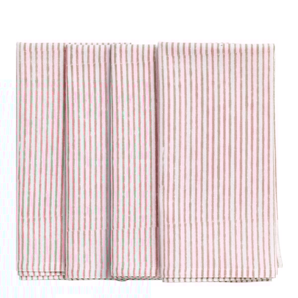 Stripe servett 50x50 cm 4-pack från Chamois erbjuder fyra klassiska servetter med ett tidlöst randigt mönster. Varje servett är noggrant handtryckt med traditionell indisk blockprintteknik, vilket ger tyget en levande och dekorativ karaktär. Detta unika hantverk lägger till en touch av stil och elegans till din dukning, perfekt för att förhöja din bordsservering med en klassisk touch.
