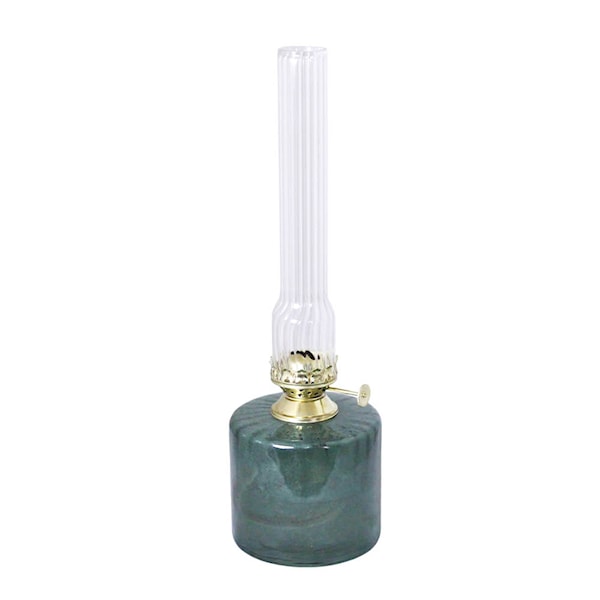 Strömshaga Elvira fotogenlampa 30 cm grön är en klassiskt utformad lampa i räfflat glas med brännare i mässing. Den gröna glasfärgen ger ett balanserat och sofistikerat uttryck, medan mässingsdetaljerna tillför värme och karaktär.