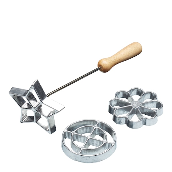 Ett fint set struvjärn från Kitchencraft. Gör dina egna goda struvor med vackert motiv av en blomma, stjärna eller cirkel. Ett långt trähandtag medföljer som gör det enkelt att använda struvformarna. Glöm inte att doppa järnet i varm olja innan det doppas i smeten! 12 månaders garanti.