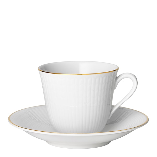 Rörstrand Swedish Grace Gala kaffekopp med fat sätter guldkant på både vardagliga och högtidliga kaffestunder.