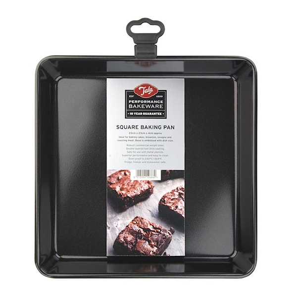 Tala Performance Bakform fyrkantig 23x23 cm är en del av den högkvalitativa Tala Performance Bakeware-serien. Bakformen är belagd med dubbla lager av "Premium Whitford Eclipse Coating", vilket gör den säker att använda med metallredskap och garanterar dess hållbarhet. Den levereras med en imponerande tio års garanti, vilket vittnar om dess långvariga kvalitet. Bakformen tål kyl, frys och diskmaskin, och är värmesäker upp till 240 grader Celsius. Med måtten 23 x 23 x 4 cm är den idealisk för en mängd olika bakverk och tillförlitlig för daglig användning. Tala Performance är erkänd som den bästa non-stick serien på marknaden, vilket gör denna bakform till ett utmärkt tillskott i ditt kök.
