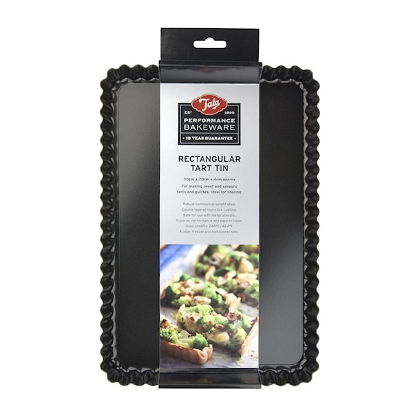 Tala Performance pajform med lös botten, rektangulär och med måtten 30 x 20 x 4 cm, är en del av den högkvalitativa Tala Performance Bakeware-serien. Pajformen är belagd med dubbla lager av "Premium Whitford Eclipse Coating", vilket gör den extremt hållbar och non-stick, samt säker att använda med metallredskap. Denna pajform levereras med en tio års garanti och är säker att använda i kyl, frys och diskmaskin, vilket gör den mycket praktisk och mångsidig. Tala Performance är erkänd som den bästa non-stick serien på marknaden. Pajformen är också värmesäker upp till 240 grader Celsius, vilket garanterar pålitlig prestanda vid höga temperaturer. Ett oumbärligt redskap för alla som älskar att baka och vill uppnå perfekta resultat varje gång.