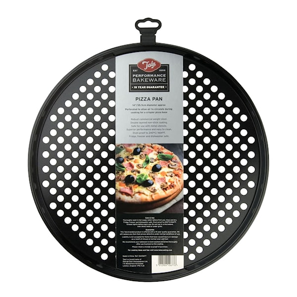 Tala Performance pizza plåt, med en diameter på 35 cm, är en del av den exklusiva Tala Performance Bakeware-serien. Denna plåt är belagd med dubbla lager av "Premium Whitford Eclipse Coating", vilket gör den extremt hållbar och tillåter användning av metallredskap utan att skada ytan. Plåten kommer med en imponerande tio års garanti och är säker att använda i kyl, frys och diskmaskin, vilket gör den både praktisk och mångsidig. Tala Performance är känd som den bästa non-stick serien på marknaden.