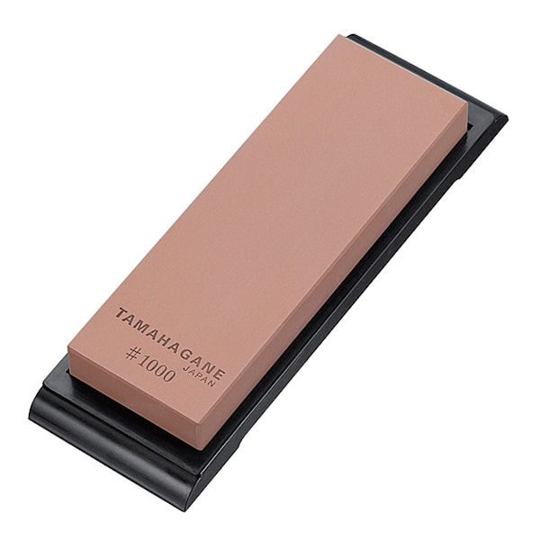 Tamahaganes grova våtslipsten (1000 i kornstorlek) används för att slipa om slöa knivar och för att ta bort hack i eggen.