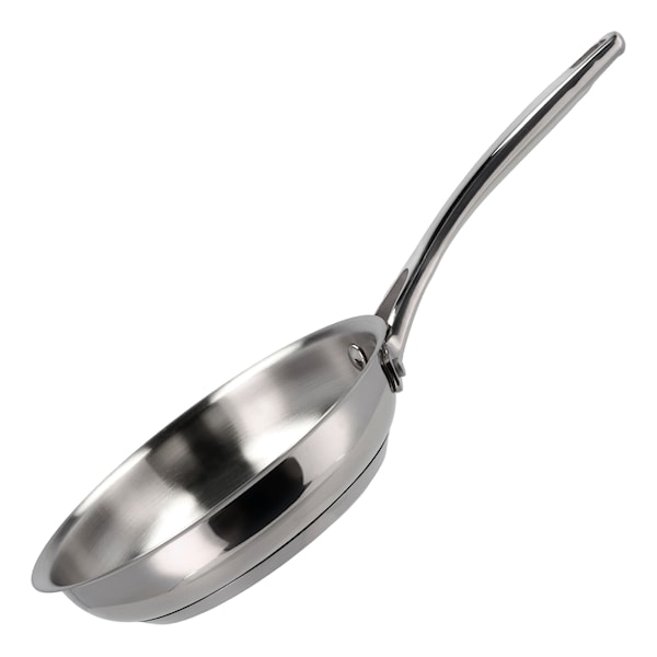 Stekpanna från Tareq Taylor tillverkad av satinpolerat rostfritt stål med sandwichbotten, det vill säga en aluminiumkärna omgiven av rostfritt stål, där det yttersta skiktet är magnetiskt. Värmen fördelas jämnt och hålls effektivt över både botten och sidor, och samtidigt är materialet lätt. Stekpannan kan användas med alla värmekällor, tål en ugnstemperatur på upp till 220 grader C och kan diskas i diskmaskin.
