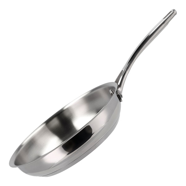 Stekpanna från Tareq Taylor tillverkad av satinpolerat rostfritt stål med sandwichbotten, det vill säga en aluminiumkärna omgiven av rostfritt stål, där det yttersta skiktet är magnetiskt. Värmen fördelas jämnt och hålls effektivt över både botten och sidor, och samtidigt är materialet lätt. Stekpannan kan användas med alla värmekällor, tål en ugnstemperatur på upp till 220 grader C och kan diskas i diskmaskin.
