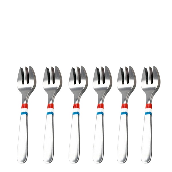 De sex gafflarna har en smal, smidig form som gör det enkelt att nå in i ostronskalet och plocka upp innehållet utan ansträngning. Den polerade ytan i rostfritt stål håller sig fin över tid, och den välbalanserade tyngden ger en gedigen känsla i handen. Setet fungerar lika bra vid intima middagar som vid större tillställningar där presentationen spelar roll.