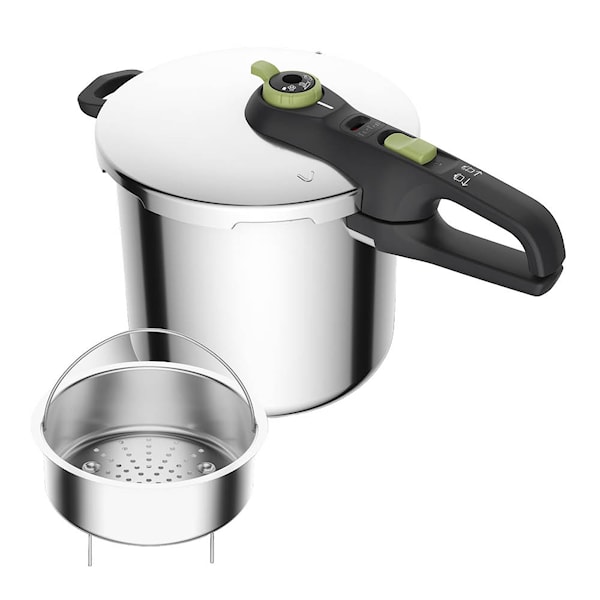 Tryckkokare Secure Trendy 8 L med ångkorg är ett bra val för dig som vill äta smakfull och näringsrik mat men som inte vill stå i köket i flera timmar. En tryckkokare liknar en kastrull men skapar ett tryck som gör att maten tillagas snabbare och behåller mer näring. Med en tryckkokare kan du tillaga allt från risotto till läckra grytor på halva tiden jämfört med om använt någon av Tefals standardgrytor.