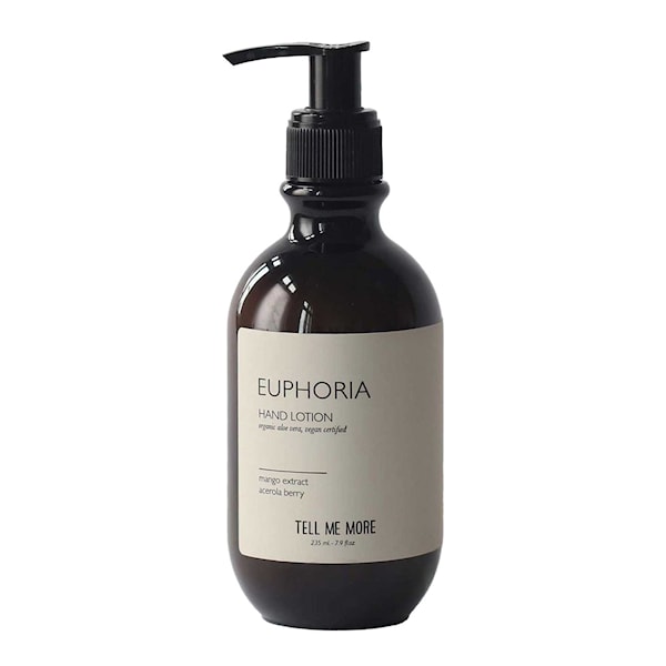 Handkräm 235 ml Euphoria från Tell Me More har en härlig, varm och kryddig orientalisk doft med inslag av mango och acerola, vilket ger en exotisk och uppfriskande upplevelse.