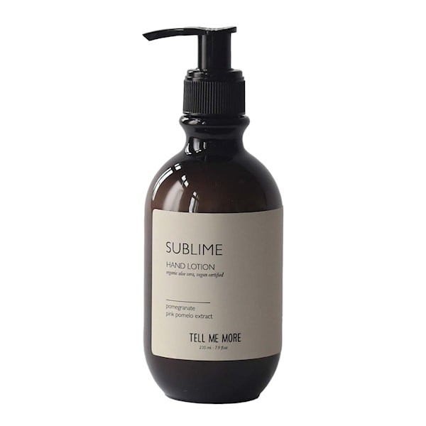 Handkräm 235 ml Sublime från Tell Me More har en fräsch doft av rosa pomelo och granatäpple, med en balanserad kombination av citrus- och blomstertoner som ger en uppfriskande och behaglig upplevelse.