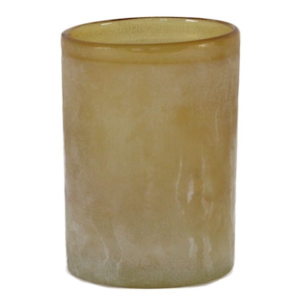 Varje lykta är handgjord, vilket gör att små variationer i glasets struktur och ton ger varje exemplar sitt unika uttryck. Den varma bärnstensfärgen passar lika fint på matbordet som i fönstret eller på en bricka tillsammans med andra ljuslyktor i olika storlekar och nyanser.