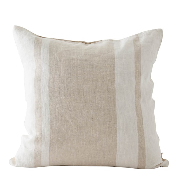 • Kuddfodral i linne med beige ränder