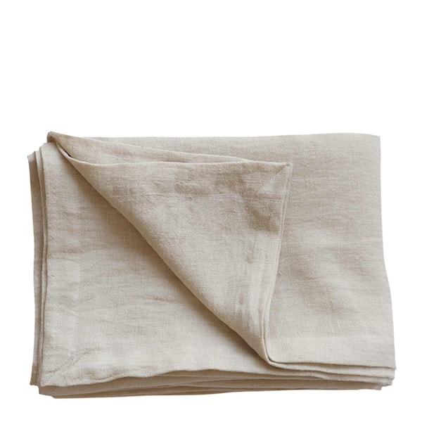 Marion kvadratisk linneduk 175x175 cm från Tell Me More är tillverkad i handvävt linne med en markant och dekorativ kant. Linnet bidrar till ett dämpat och tidlöst uttryck, och den grova kvaliteten i tyget ger en naturlig känsla med synliga skiftningar och textur.