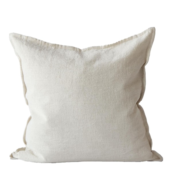 Marion örngott 50x50 cm från Tell Me More är tillverkat av 100 % handvävt linne och har dekorativa kantsömmar som ger ett stilrent uttryck. Örngottet har en grov linnekvalitet med en vacker, naturlig textur där tyget har små variationer. Varje örngott kan skilja sig något i textur, färg och form på grund av den handvävda processen, vilket ger varje stycke en unik karaktär.