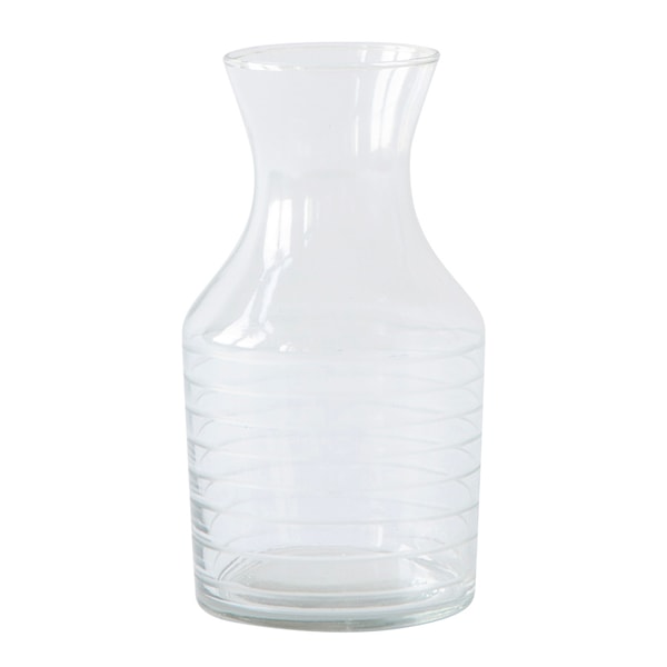 Upplev den eleganta och mångsidiga Solo Karaffen från Tell Me More - en genomskinlig karaffel, handgjord med dekorativa ränder i glaset. Varje karaffel är unik, munblåst av återvunnet glas, och kommer att tillföra en personlig och livlig touch till din borddukning.