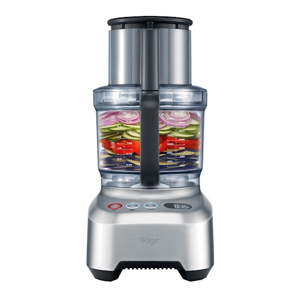Kitchen Wizz Pro från Sage är en riktig hjälpreda i köket. Stabil och säker med möjlighet till 24 olika tjocklekar. Extra stort inmatningsrör för att slippa skära ingredienserna i små bitar.
