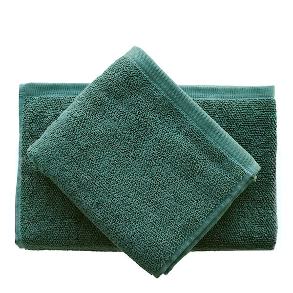 Den dämpade färgen dark green ger ett sofistikerat och harmoniskt intryck som lyfter badrummet med en känsla av naturlig lyx. Vävda i Portugal av en familjeägd textilverkstad med generationers erfarenhet.