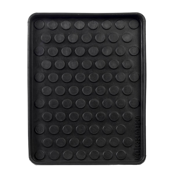 Tica Copenhagen Dot Small skobricka svart är en funktionell och platsbesparande lösning för att hålla entrén ren och prydlig. Brickan är gjuten i 60% återvunnet gummi och har en tyngd som gör att den ligger stadigt på golvet, oavsett underlag. Den glider inte omkring och kanterna håller formen utan att böjas eller spricka, även vid daglig användning.