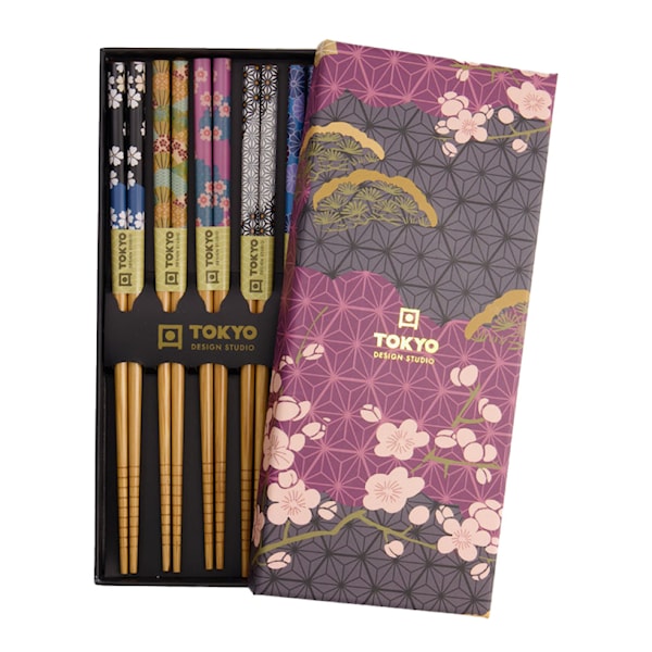 Tokyo Design Studio ätpinnar 5-pack i presentförpackning kombinerar skönhet och funktion i ett set som passar både som gåva och till det egna hemmet. De blommönstrade japanska motiven ger ett stilrent uttryck samtidigt som pinnarna är designade för att användas ofta.