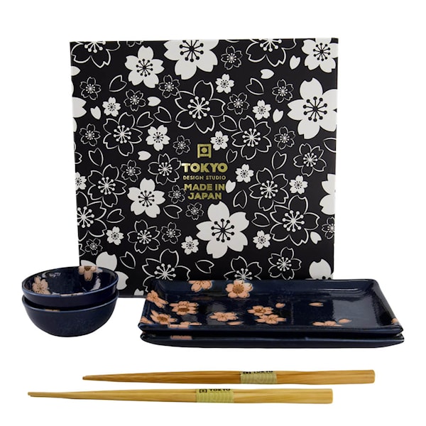 Tokyo Design Studio Cobalt Blue Sakura sushiset 6 delar är en stilren gåvoförpackning med allt du behöver för att skapa en elegant sushiupplevelse hemma. Det koboltblå sakuramönstret ger setet ett sofistikerat och tidlöst uttryck.