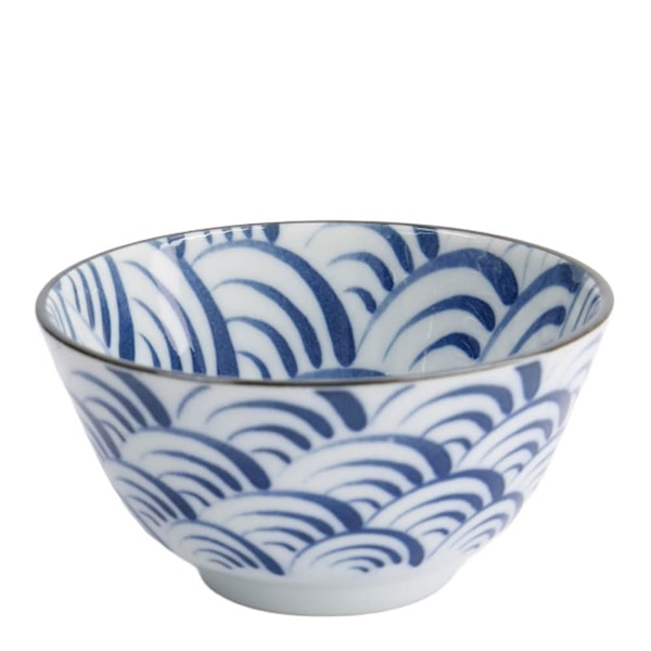 Skålens blåvita vågmönster, inspirerat av japanska havsmotiv, ger ett lugnt och harmoniskt uttryck. Den är tillverkad i högkvalitativt porslin som kombinerar estetik med hållbarhet.