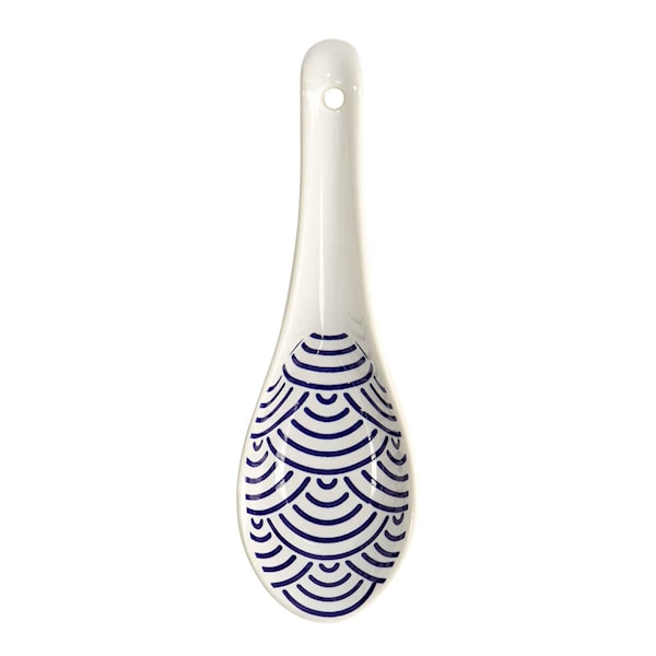 Tokyo Design Studio Nippon Blue sked 14 cm vågor är en keramisk sked i japansk stil med blått vågmönster, inspirerad av Hokusais klassiska motiv. Perfekt för ramen, soppor eller mindre serveringar – både till vardag och när du vill duka lite extra fint.