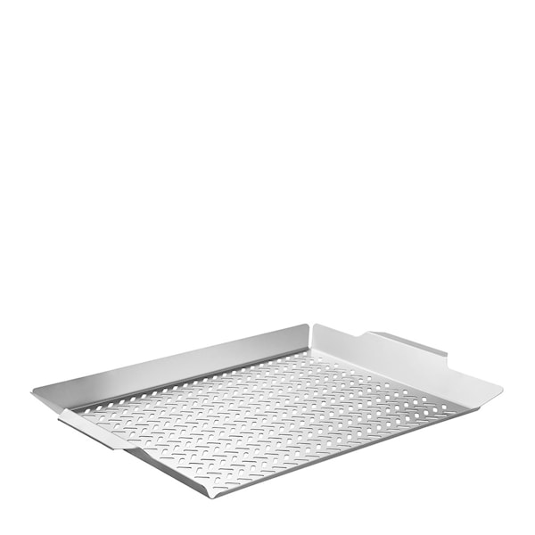 Tillverkad av högkvalitativt borstat rostfritt stål är grillbrickan både robust och hållbar. Den stora ytan på 48 x 32 cm ger gott om plats för att grilla flera ingredienser samtidigt, medan den jämna värmefördelningen säkerställer en optimal stekupplevelse. Perfekt för att grilla små eller ömtåliga livsmedel som tigerräkor, fiskfiléer eller grönsaker utan att de faller genom gallret.