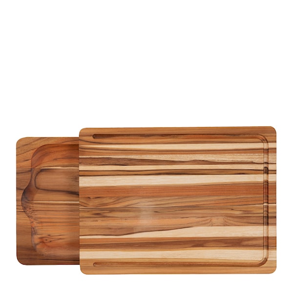Tillverkade av slitstarkt teakträ, känt för sin naturliga hållbarhet och motståndskraft mot fukt, säkerställer dessa skärbrädor en lång livslängd. Ytan är behandlad med olja för att ge ett vattenavvisande lager, vilket samtidigt gör rengöringen enkel och ger en mjuk, behaglig finish. Med måtten 40 x 30 cm erbjuder de gott om arbetsyta för att skära och förbereda kött, grönsaker och andra råvaror.