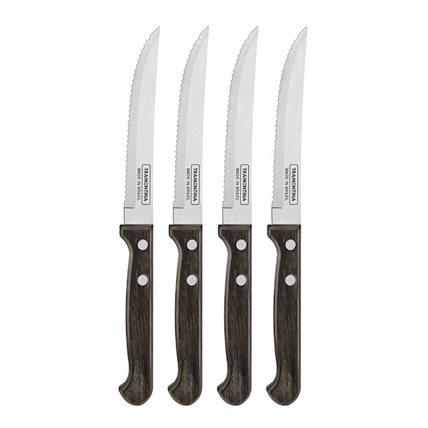 Tramontina Biffkniv 4-pack polywood är ett knivset med blad i rostfritt stål och handtag i behandlat polywood. Utformat för precis och effektiv skärning av kött.