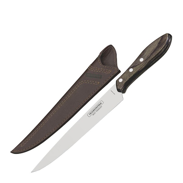 Tramontina Churrasco Premium köttkniv i mörkbrun design är framtagen för köttservering och grillning. Det värmebehandlade stålet ger extra styrka och hållbarhet, medan det behandlade polywood-handtaget erbjuder hög motståndskraft mot både värme och stötar.