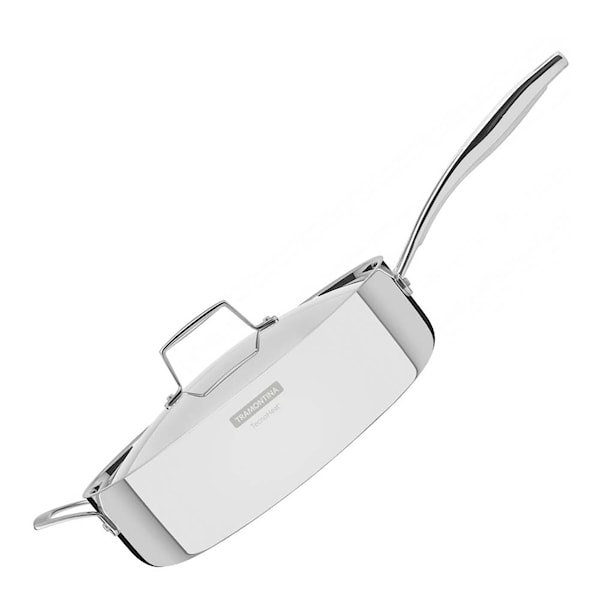 Den eleganta designen i högblankpolerat stål och de nitade handtagen ger både stil och säkerhet. Pannan är kompatibel med alla värmekällor, inklusive induktion, och tål ugnstemperaturer upp till 260 °C. Den är också väl lämpad för servering och rengörs enkelt i diskmaskin.